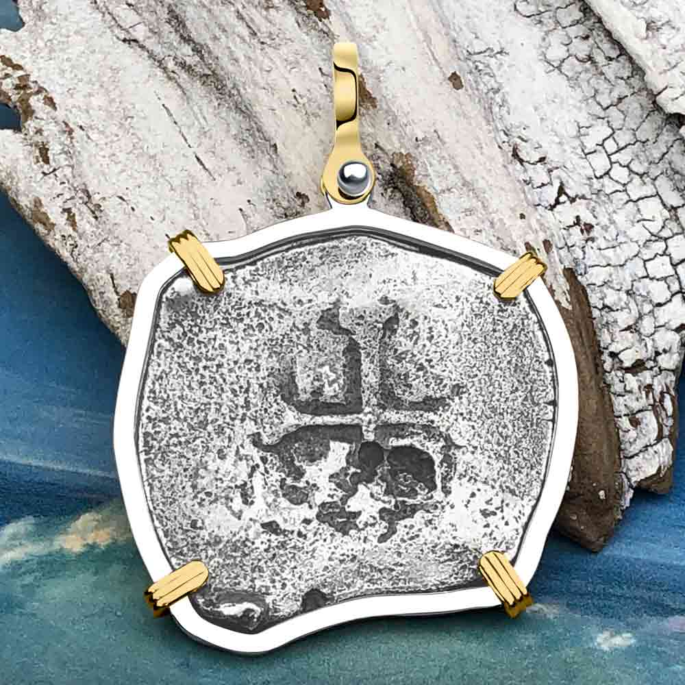 Concepcion Shipwreck 4 Reale Silver Piece of 8 14K Gold and Sterling Silver Pendant | Artifact #3542