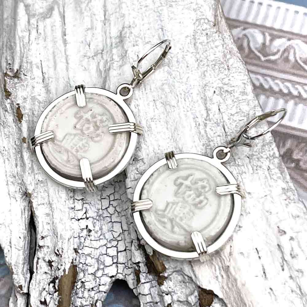 Siam Porcelain Gaming Token - from the Era of "The King & I" - Sterling Silver Earrings | Artifact #8090