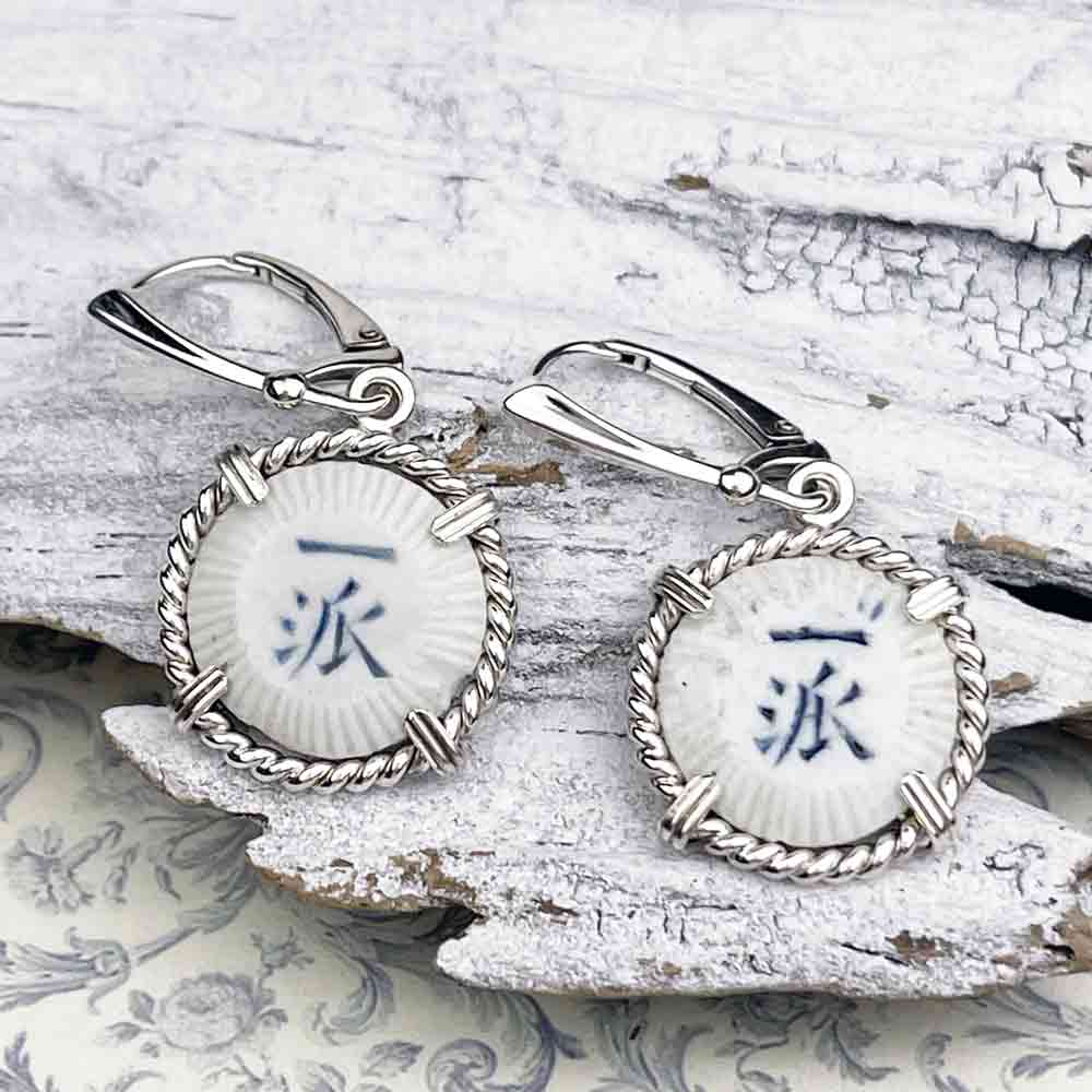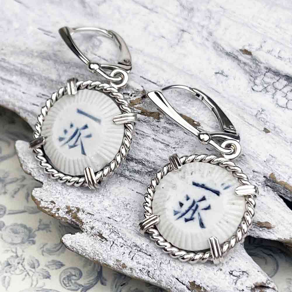 Siam Porcelain Gaming Token - from the Era of "The King & I" - Sterling Silver Earrings | Artifact #8100 is backordered and will ship as soon as it is back in stock.