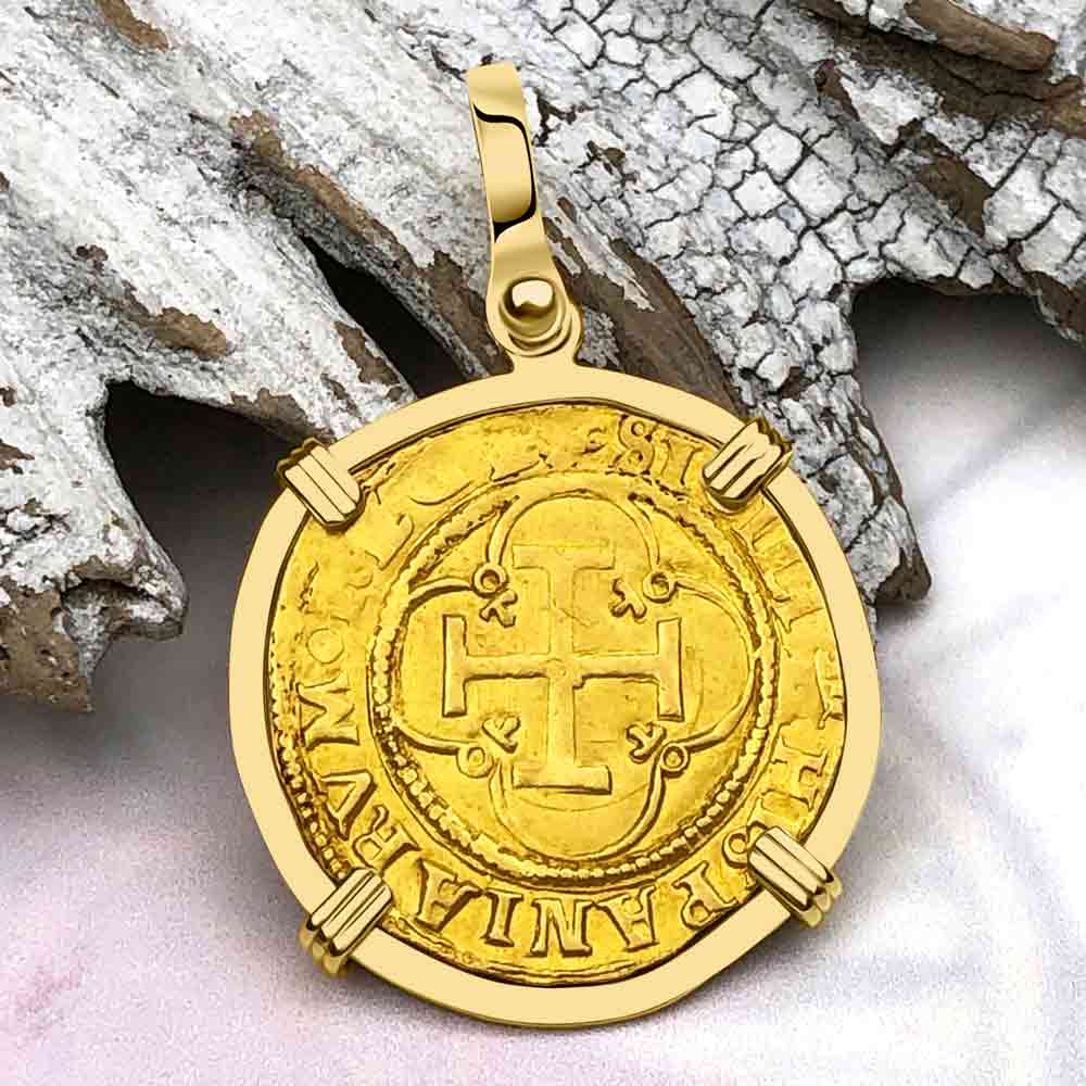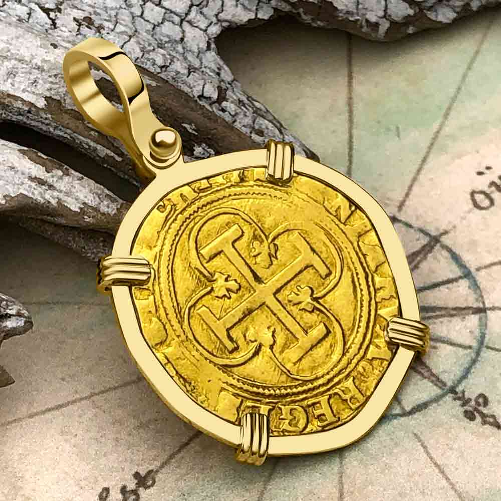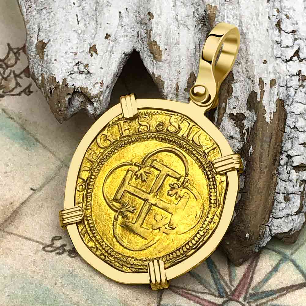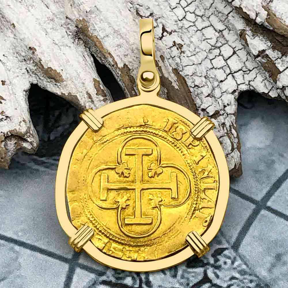 Pirate Era Circa 1580 22K Gold 2 Escudo - the Legendary Doubloon - 18K Gold Pendant | Artifact #5803