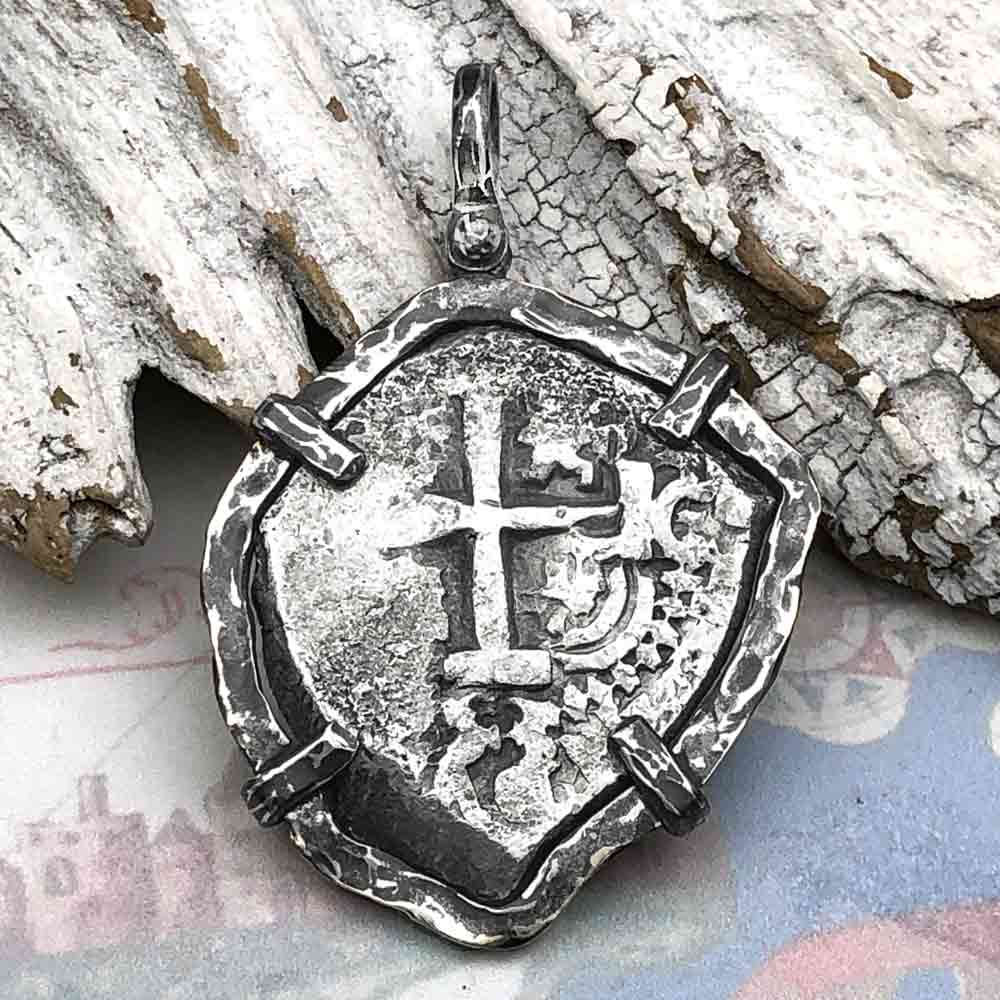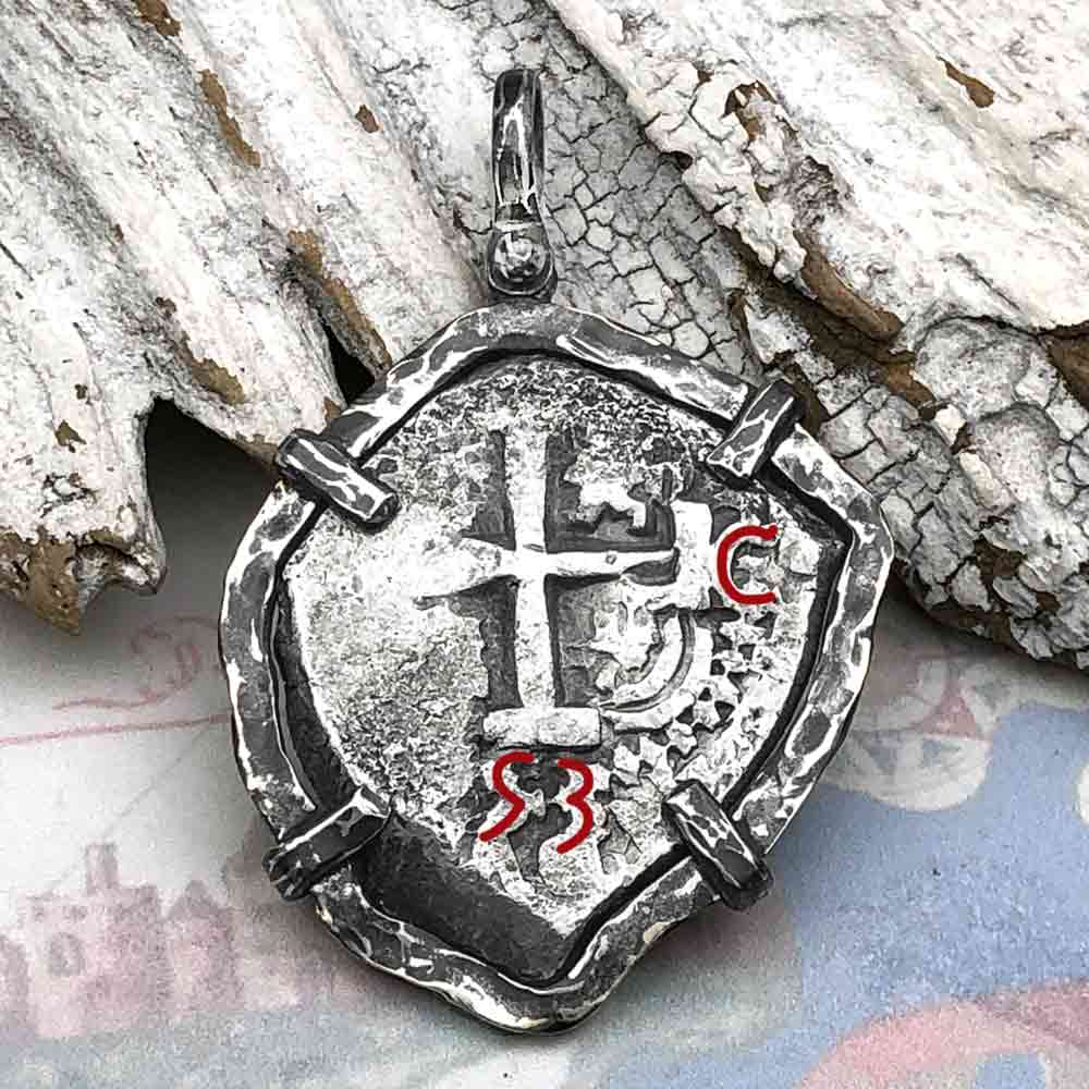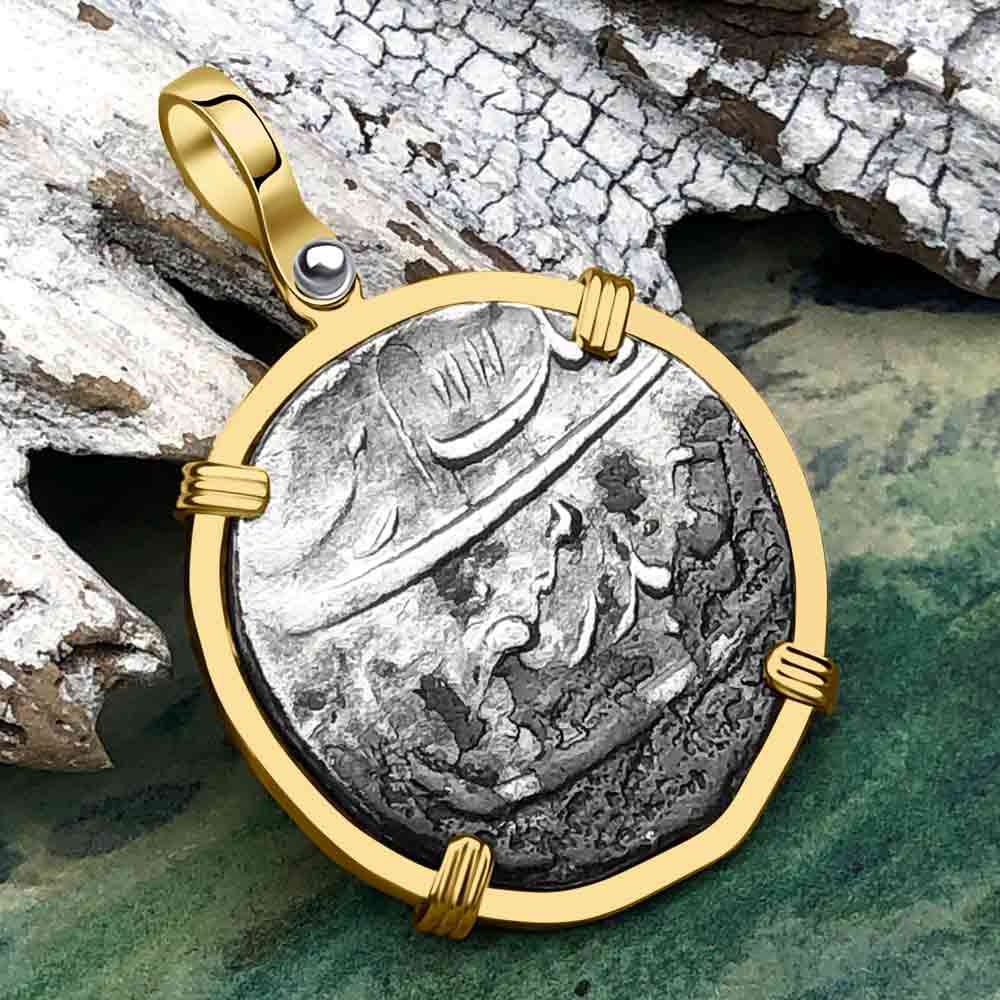 $ 9,250.00 USDUnit price /UnavailableConcepcion Shipwreck 4 Reale Cob Silver Piece of 8 14K Gold Pendant | Artifact #5588