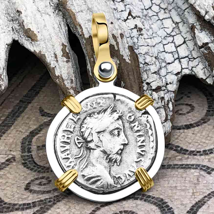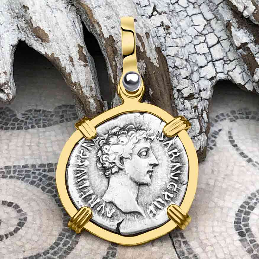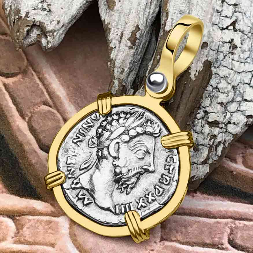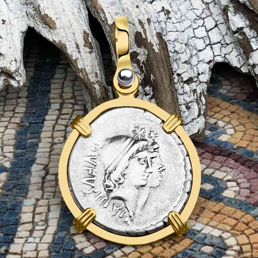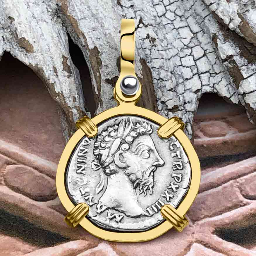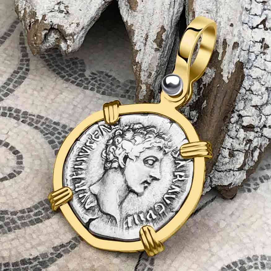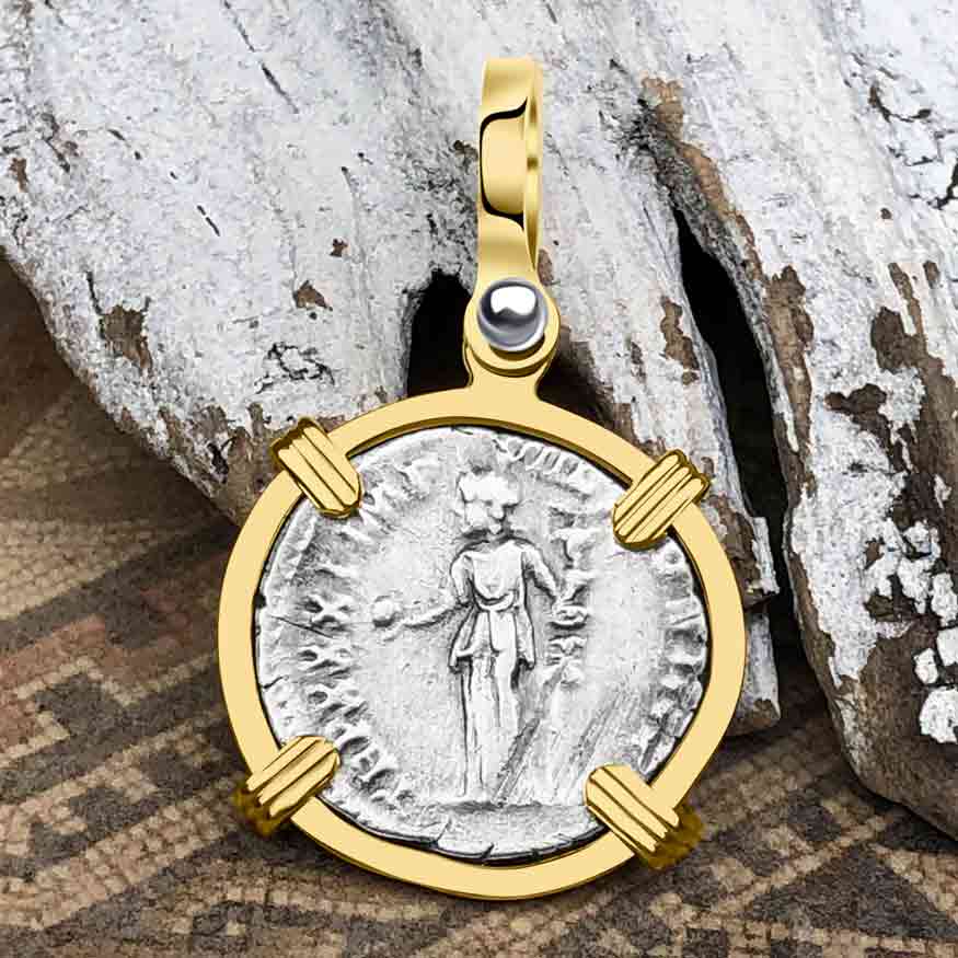Templar Knights Era French Healing Angel Silver Denier 14K Gold Pendant | Artifact #5831