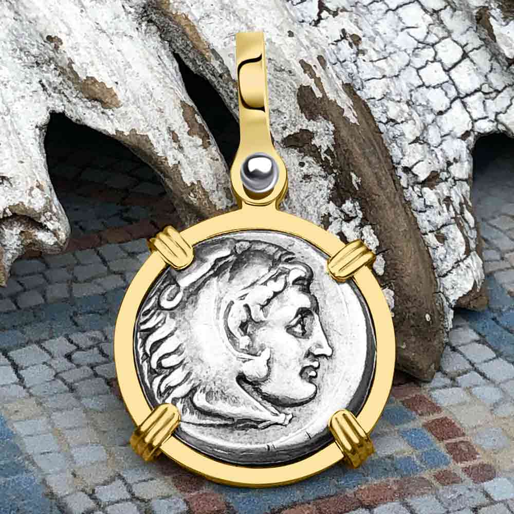 Browse our collection of Ancient Greek coin jewelry and meet Alexander the Great, Athena and her Owl of Wisdom, Hercules and the Lion, the Boy on the Dolphin, Zeus, Helios and more.