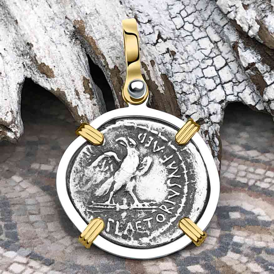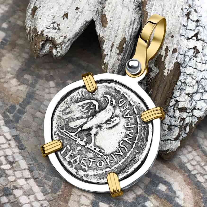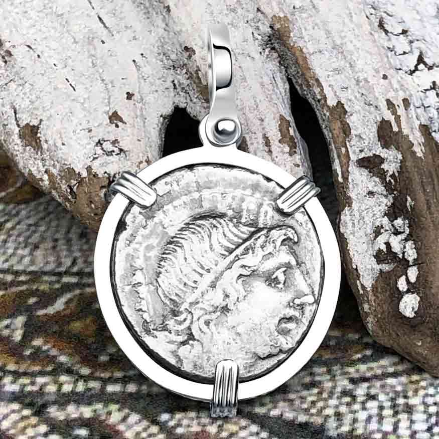 Roman Republic Silver Denarius 90 BC Apollo and the Horseman Coin 14K Gold Pendant | Artifact #3794