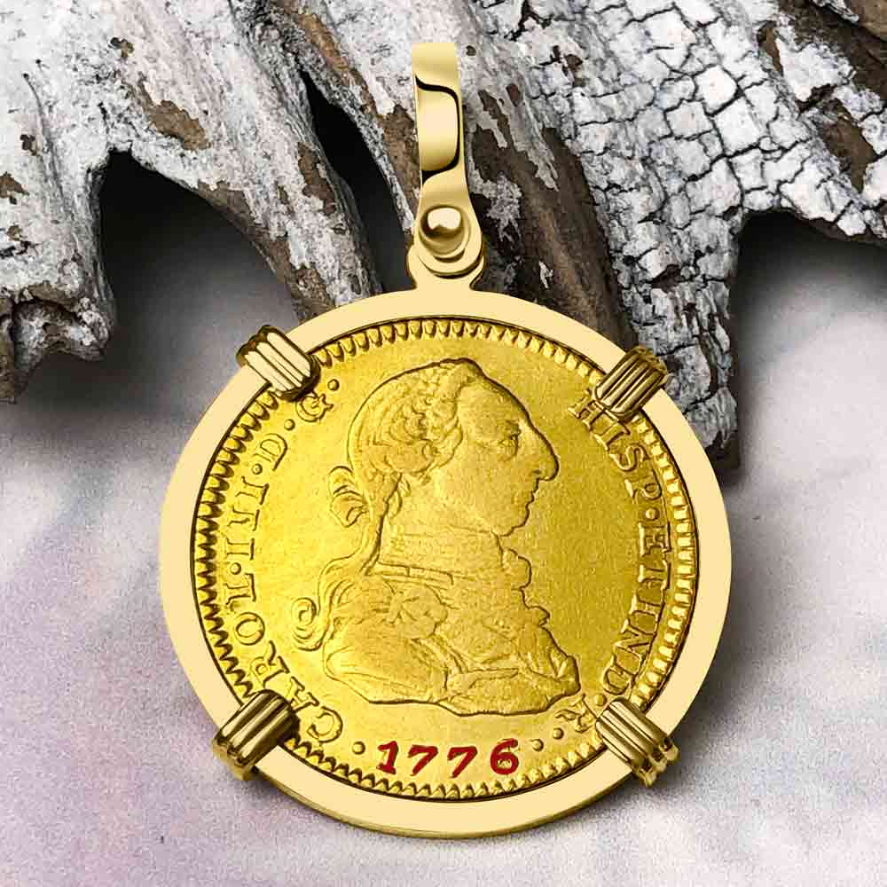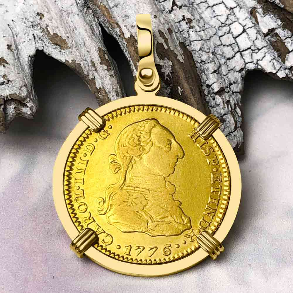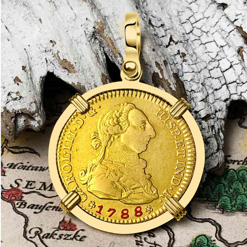 1788 Spanish 22K Gold Portrait 2 Escudo - the Legendary Doubloon - 18K Gold Pendant | Artifact #5727