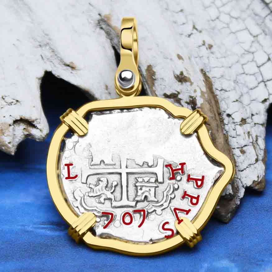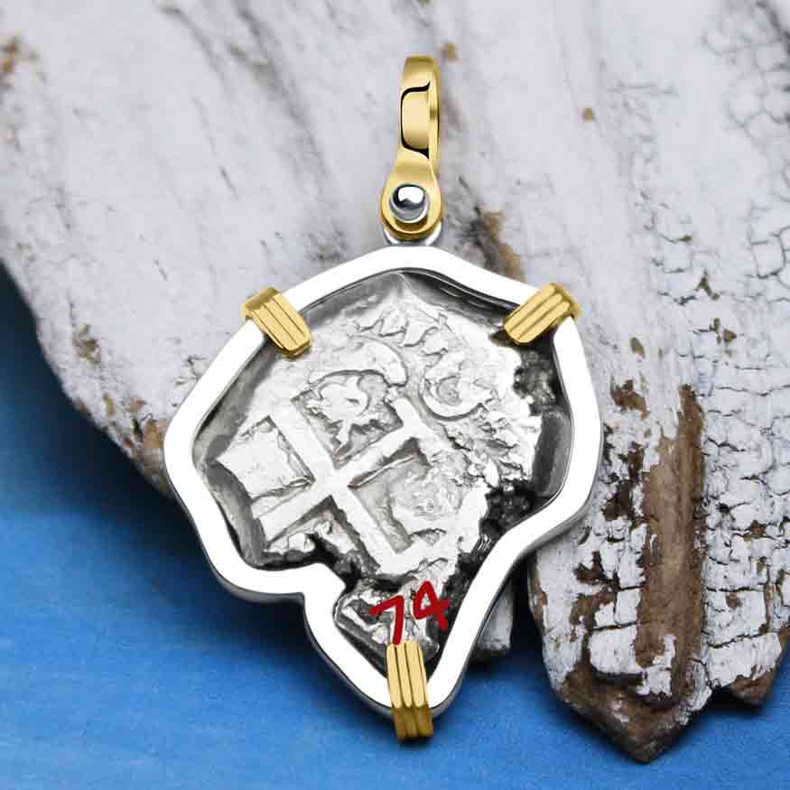 $ 1,450.00 USDUnit price /UnavailablePirate Era 1668 Spanish 1 Reale Piece of Eight 14K Gold & Sterling Silver Pendant | Artifact #5537