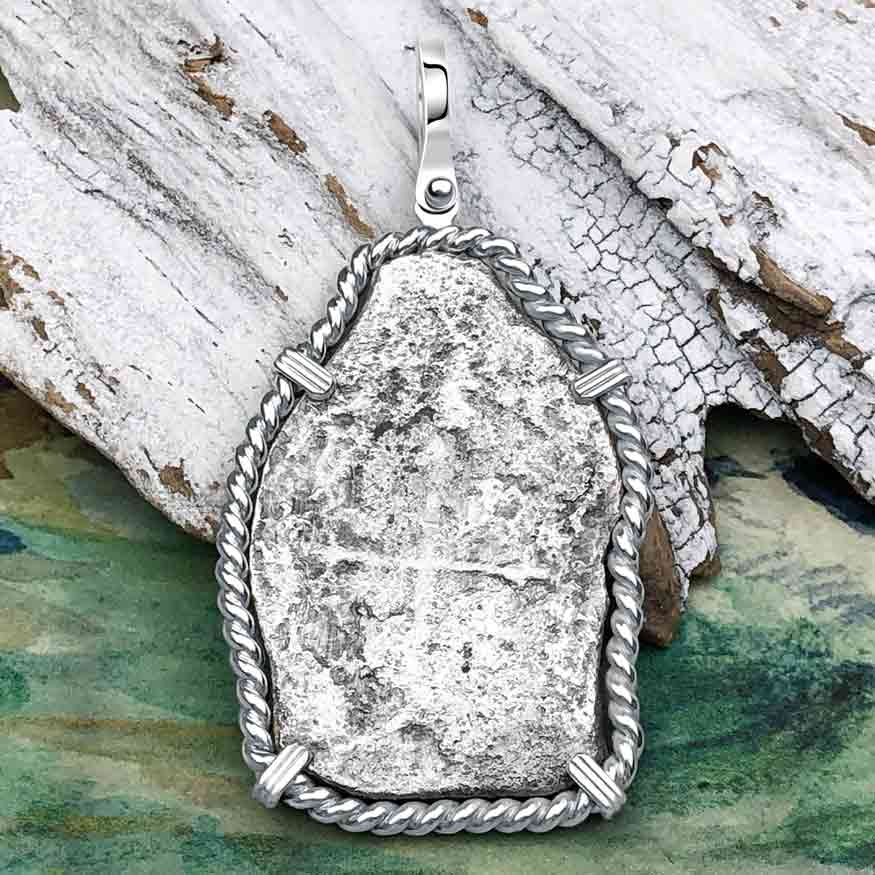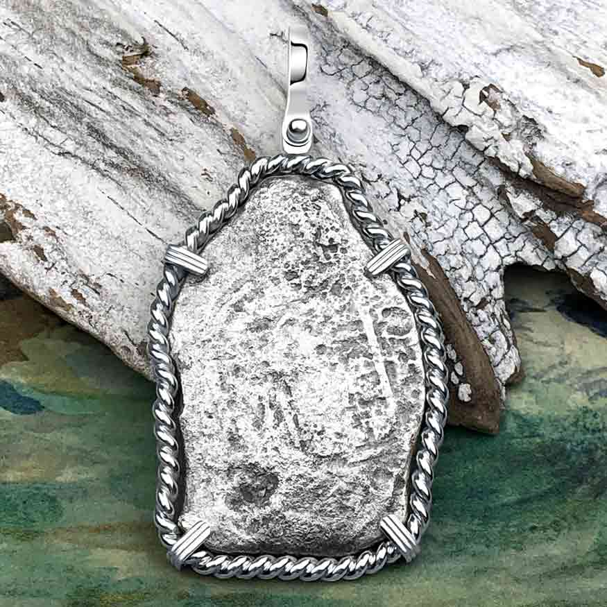 1715 Fleet Golden Age of Piracy Shipwreck Spanish 8 Reale Piece of 8 Silver Pendant | Artifact # 5177 is backordered and will ship as soon as it is back in stock.