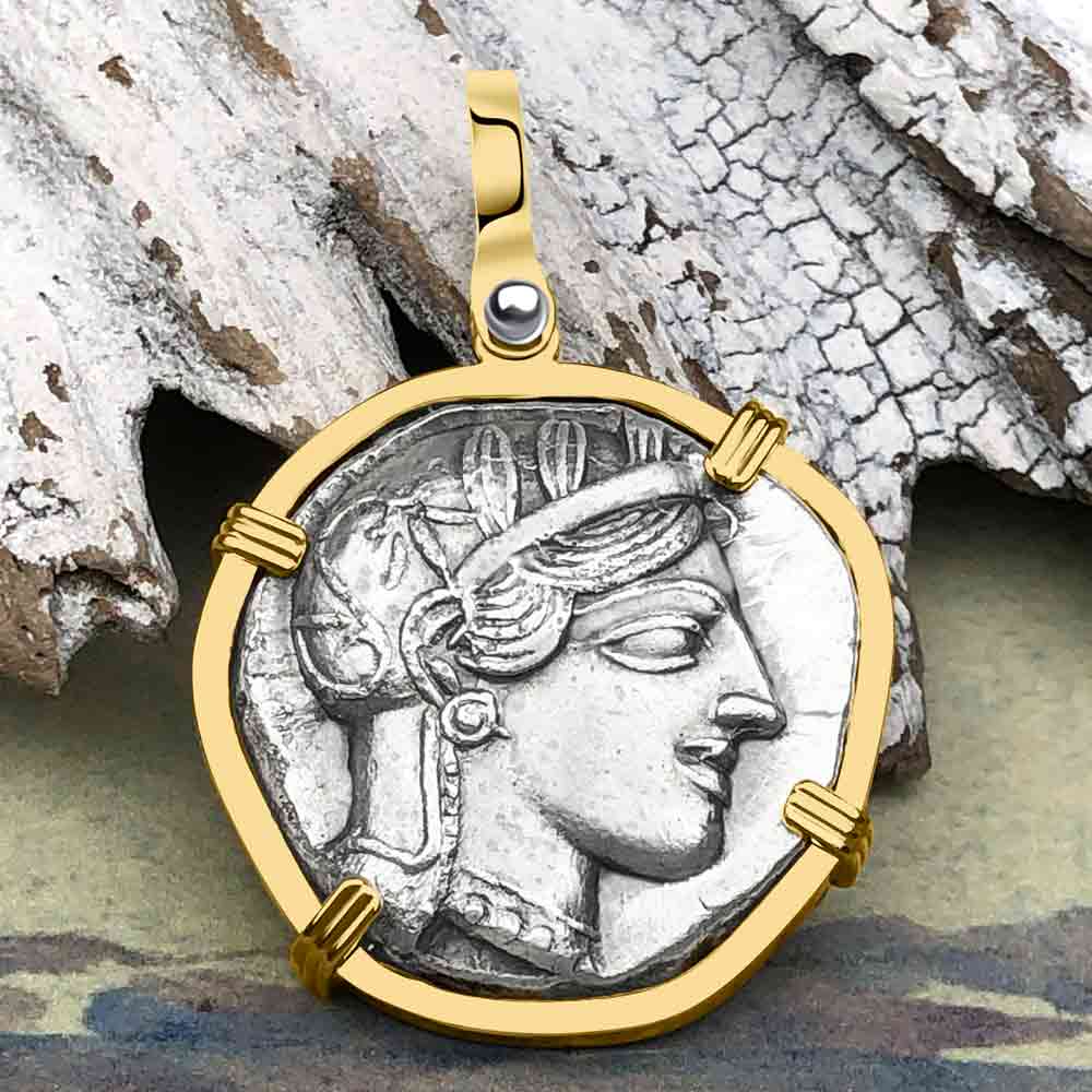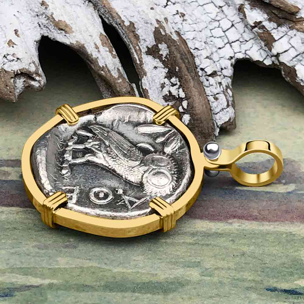 Ancient Greek Athena and the Owl Silver Tetradrachm circa 450 BC RARE Zero-Die 14K Gold Pendant | Artifact #5786
