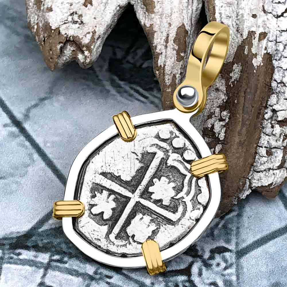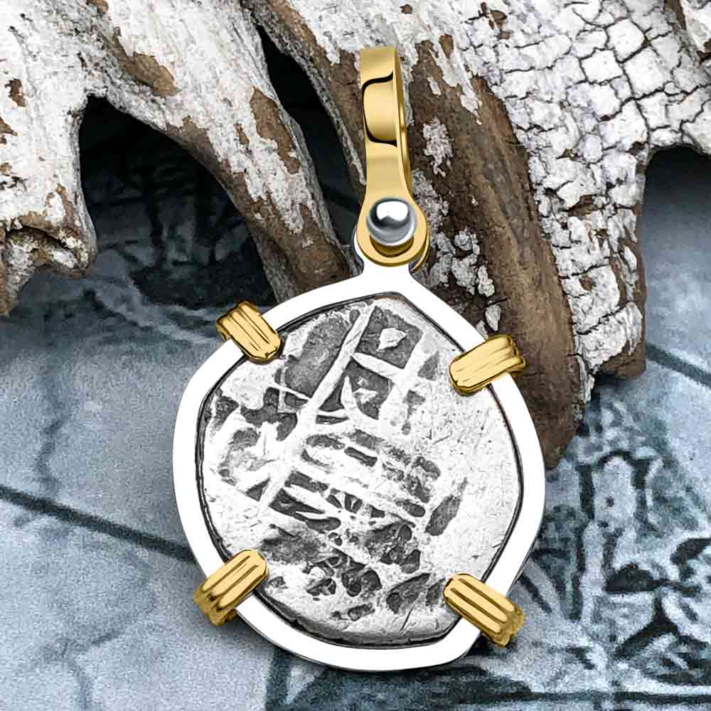 Atocha Era Land Find Spanish 1 Reale Piece of Eight 14K Gold and Sterling Silver Pendant | Artifact # 5970