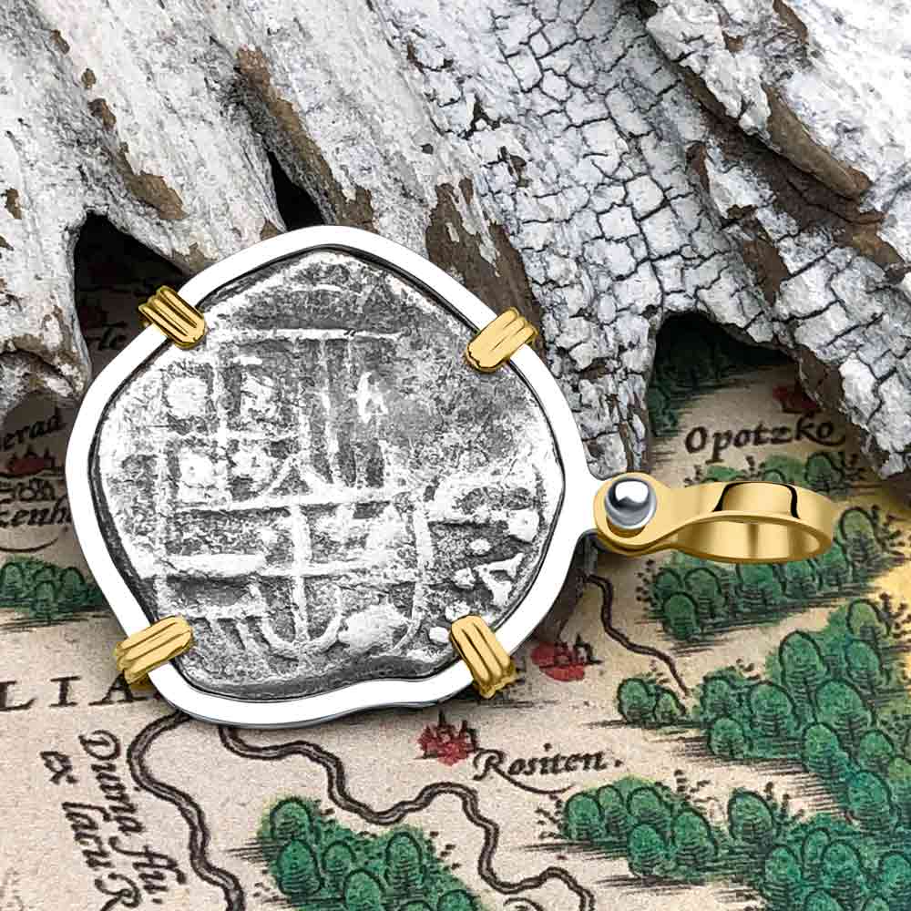 Atocha Era Land Find Spanish 2 Reale Piece of Eight 14K Gold and Sterling Silver Pendant | Artifact # 5972