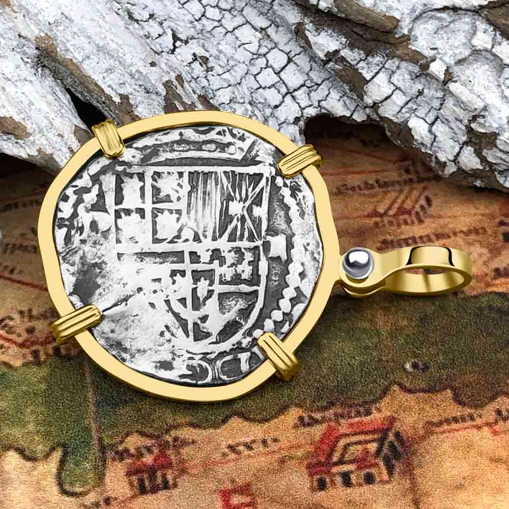 Atocha Era Land Finder Spanish 2 Reale Piece of Eight 14K Gold Pendant | Artifact #5976