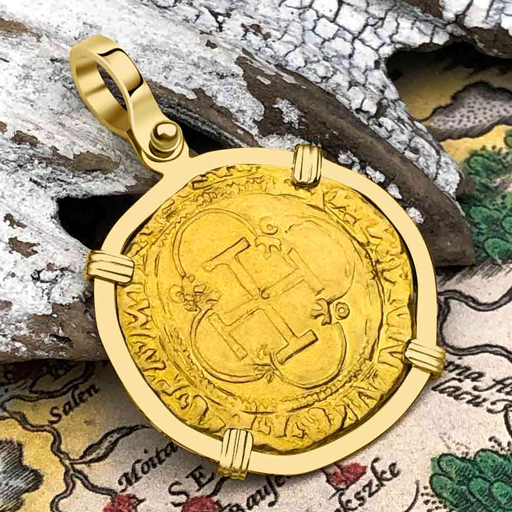 Circa 1560 Unknown Shipwreck 22K Gold 1 Escudo - the Legendary Pirate Era Doubloon 18K Gold Pendant | Artifact #4090
