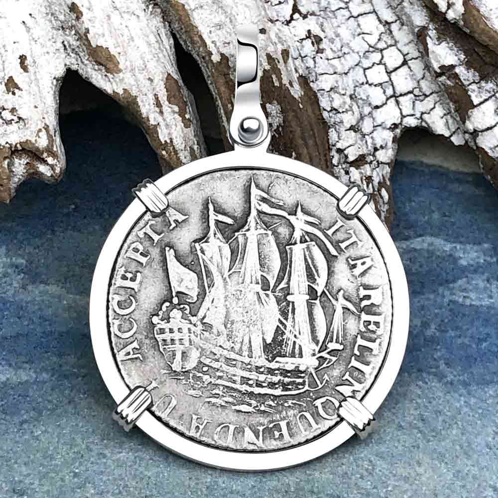 Dutch East India Company 1768 Silver 6 Stuiver Ship Shilling "I Struggle and Survive" Sterling Silver Pendant | Artifact #5754
