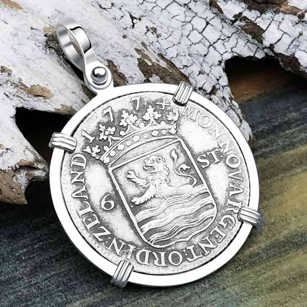 Dutch East India Company 1774 Silver 6 Stuiver Ship Shilling "I Struggle and Survive" Sterling Silver Pendant | Artifact #5752 is backordered and will ship as soon as it is back in stock.