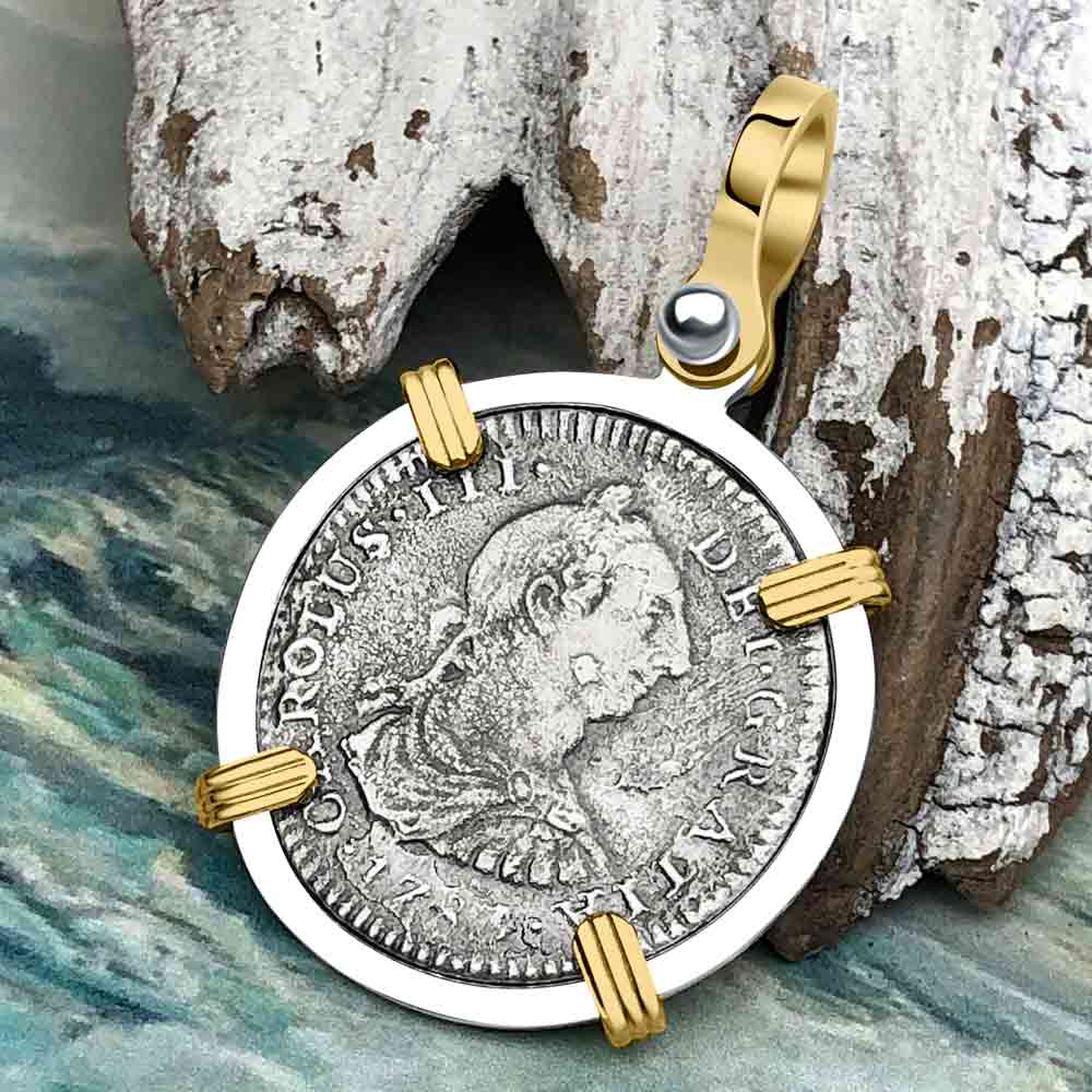 El Cazador Shipwreck 1783 1 Reale Piece of 8 14K Gold & Sterling Silver Pendant | Artifact #5225