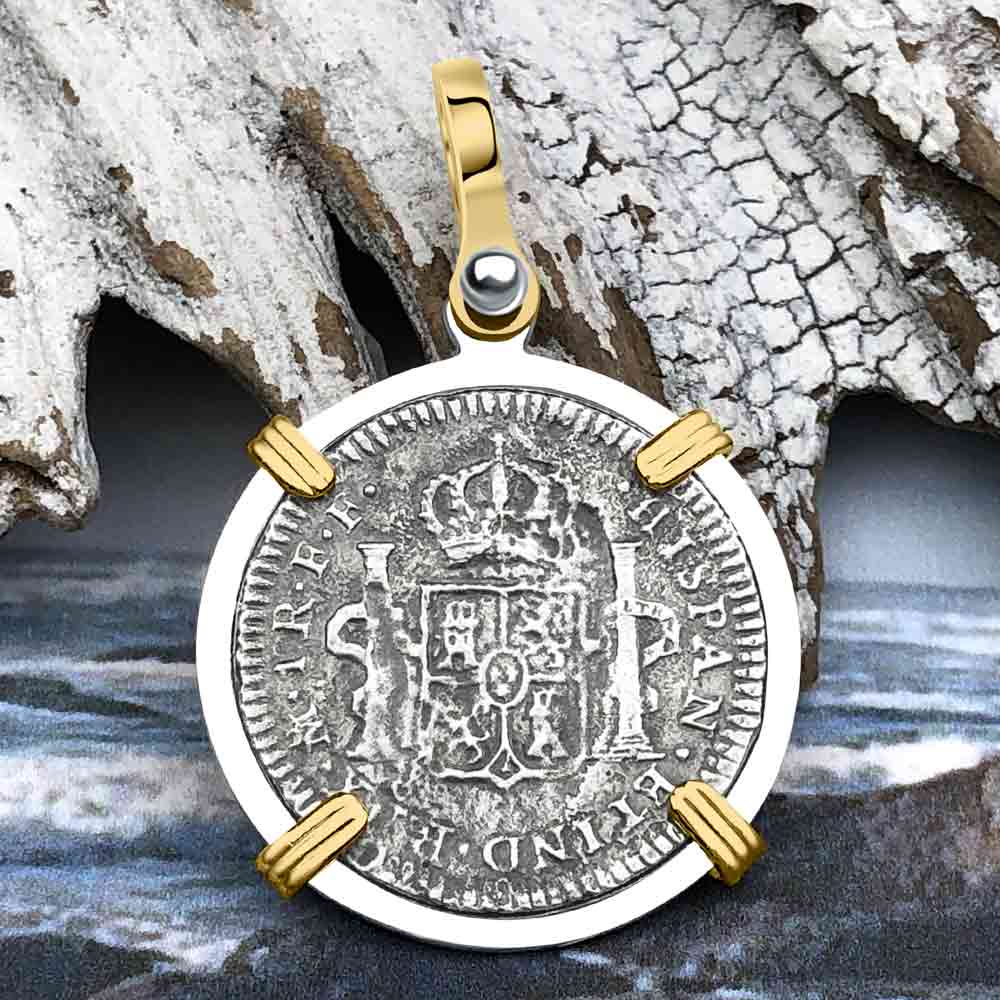 The Classic 1 Reale "Piece of Eight" Heirloom Pendant from the Shipwreck El Cazador set in 14K Gold & Sterling Silver