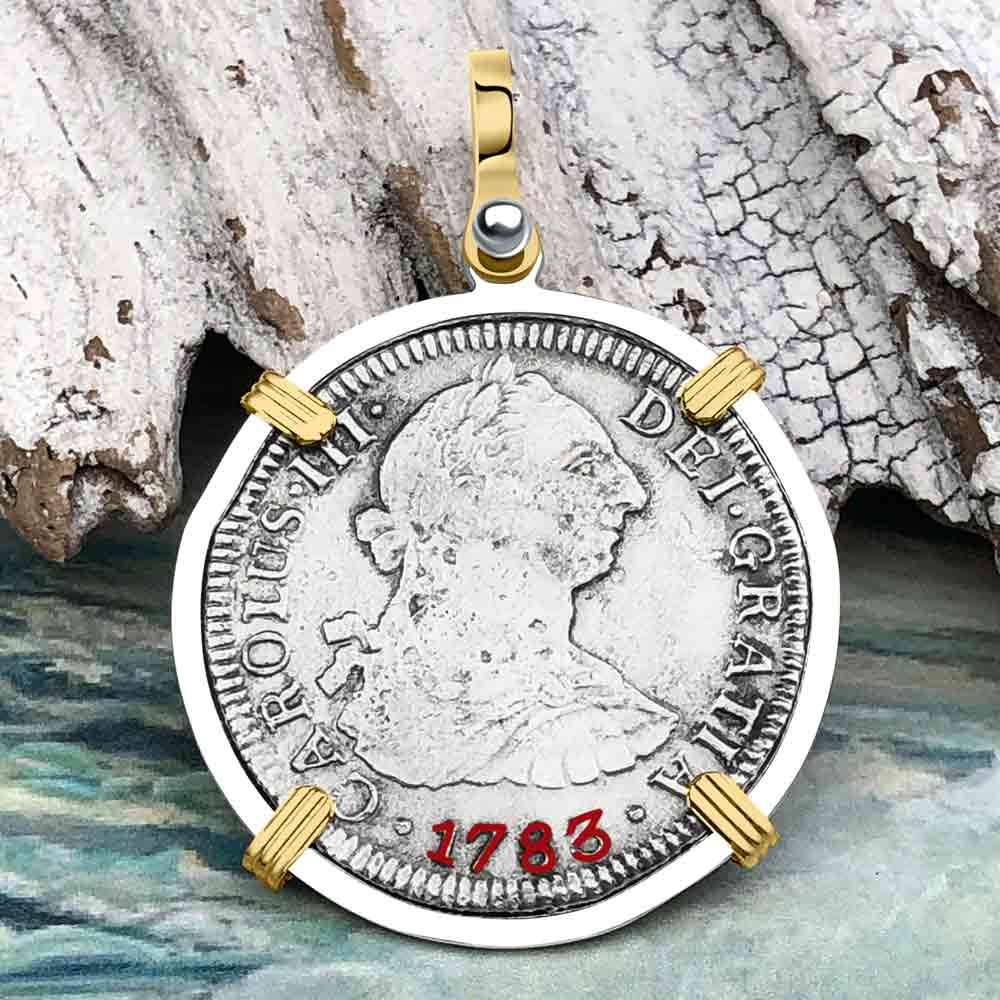 El Cazador Shipwreck 1783 2 Reale Piece of 8 14K Gold & Sterling Silver Pendant | Artifact #5238 is backordered and will ship as soon as it is back in stock.