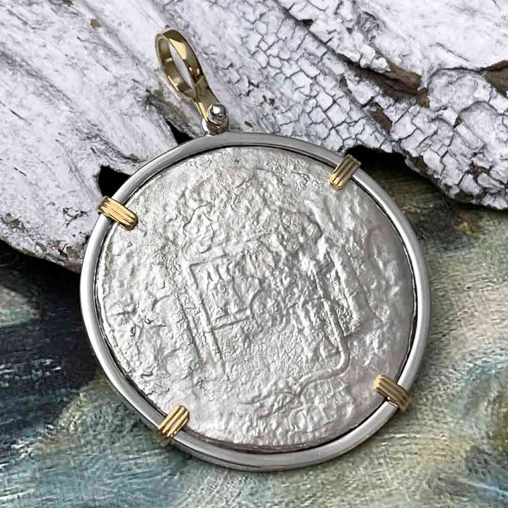 El Cazador Shipwreck 1783 8 Reale Piece of 8 14K Gold & Sterling Silver Pendant | Artifact #9249