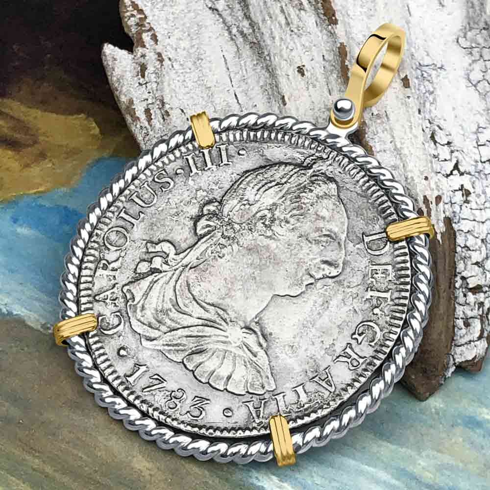 El Cazador Shipwreck 1783 8 Reale Piece of 8 14K Gold & Sterling Silver Pendant | Artifact #9250