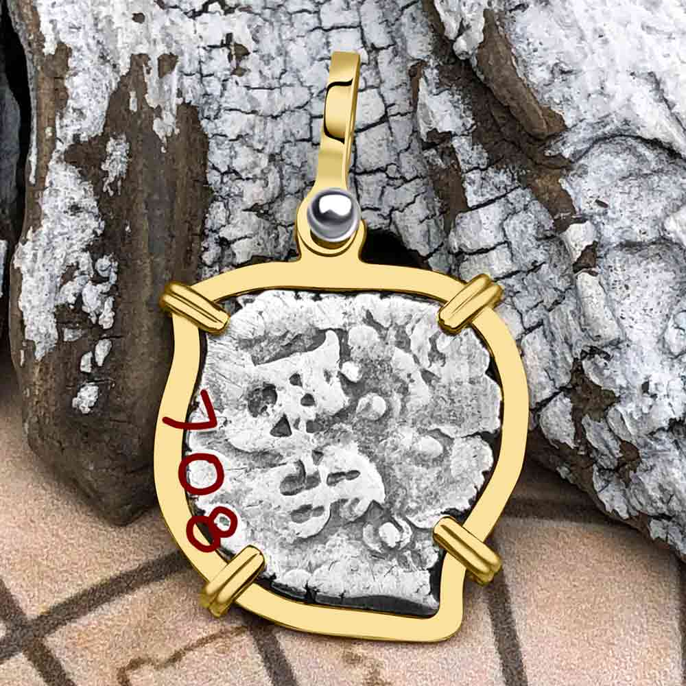 Heart Shaped Pirate Era 1708 Spanish 1/2 Reale Cob Piece of Eight 14K Gold Pendant | Artifact #5956