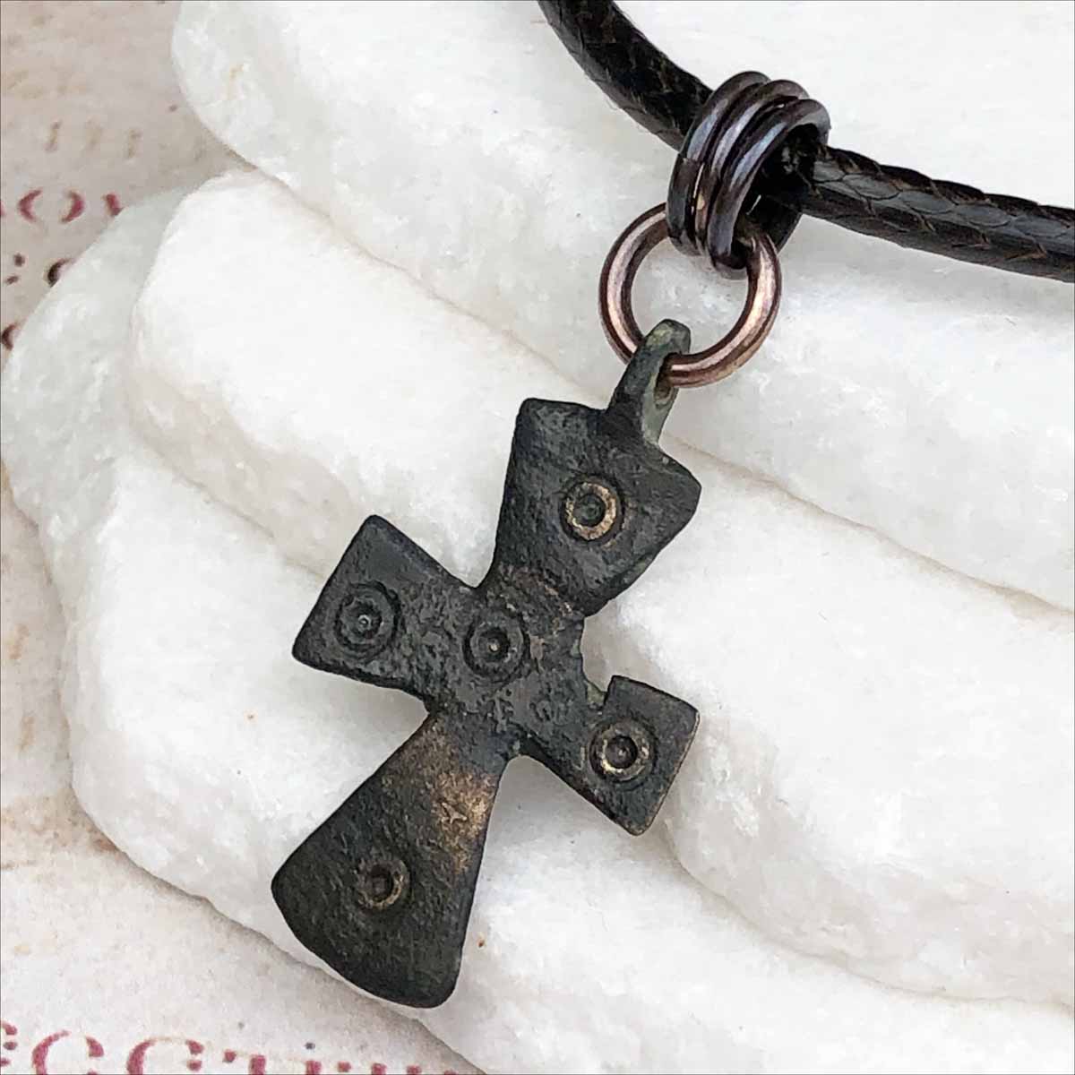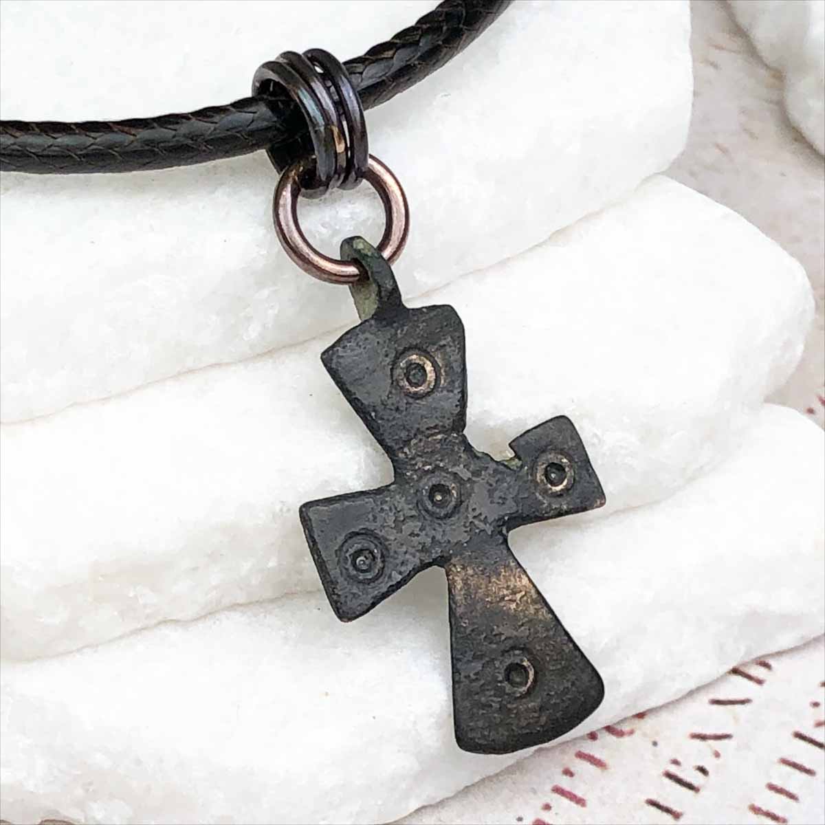 Medieval Byzantine Five Wounds of Christ Bronze Cross Necklace circa 1,000 AD | Artifact #5770