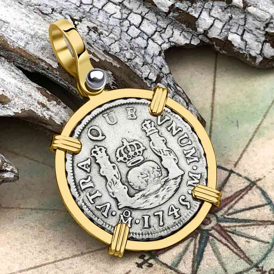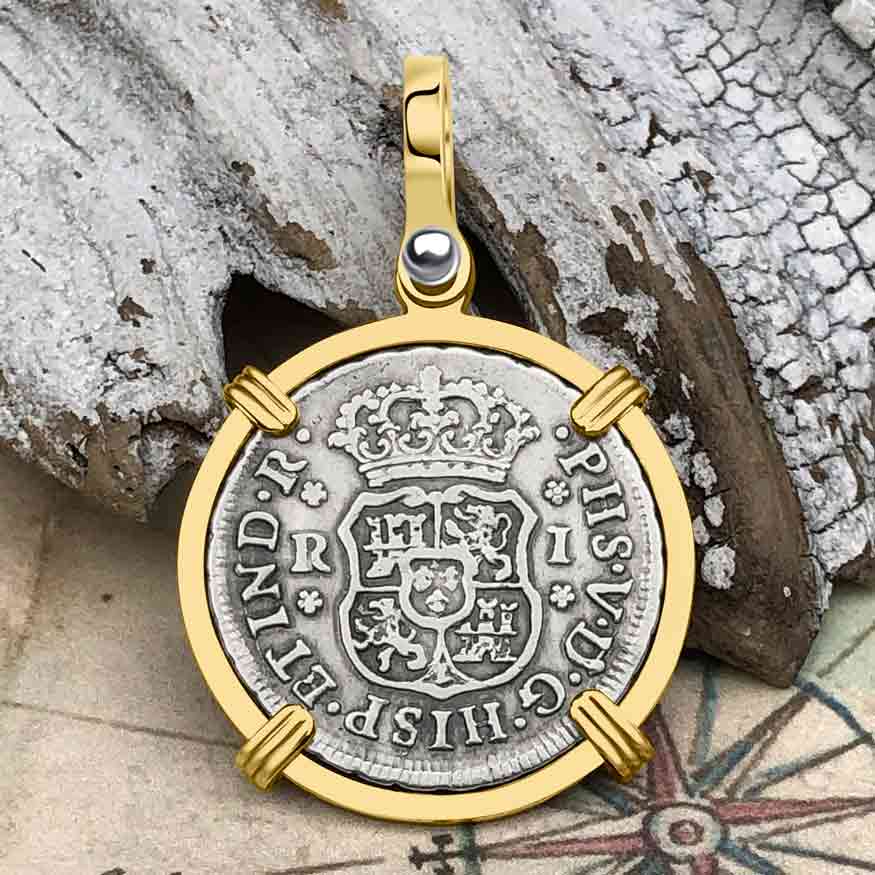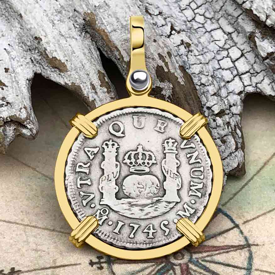 Pirate Era 1745 Spanish 1 Reale Piece of Eight Pillar Dollar Style Pendant in 14K Gold | Artifact #3917