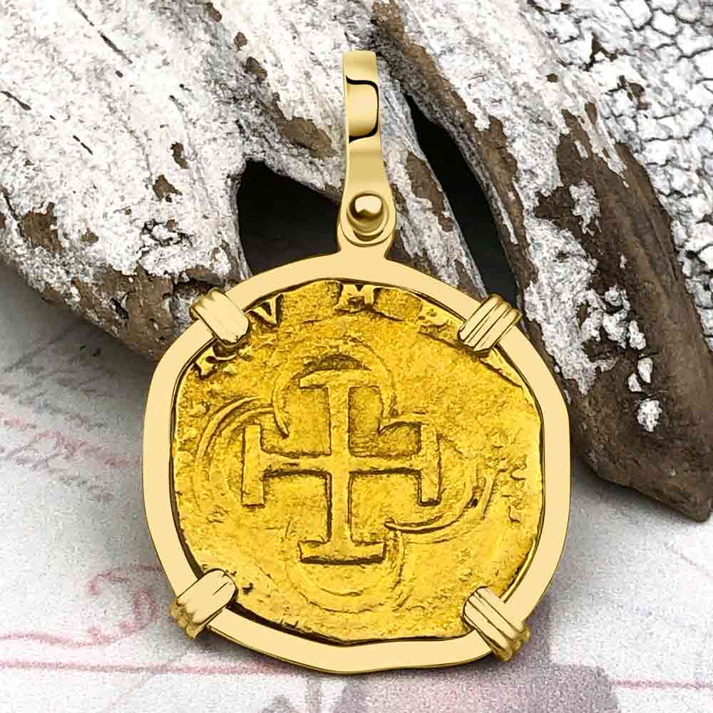 Pirate Era Circa 1566 22K Gold One Escudo - the Legendary Doubloon - 18K Gold Pendant | Artifact #5802 is backordered and will ship as soon as it is back in stock.