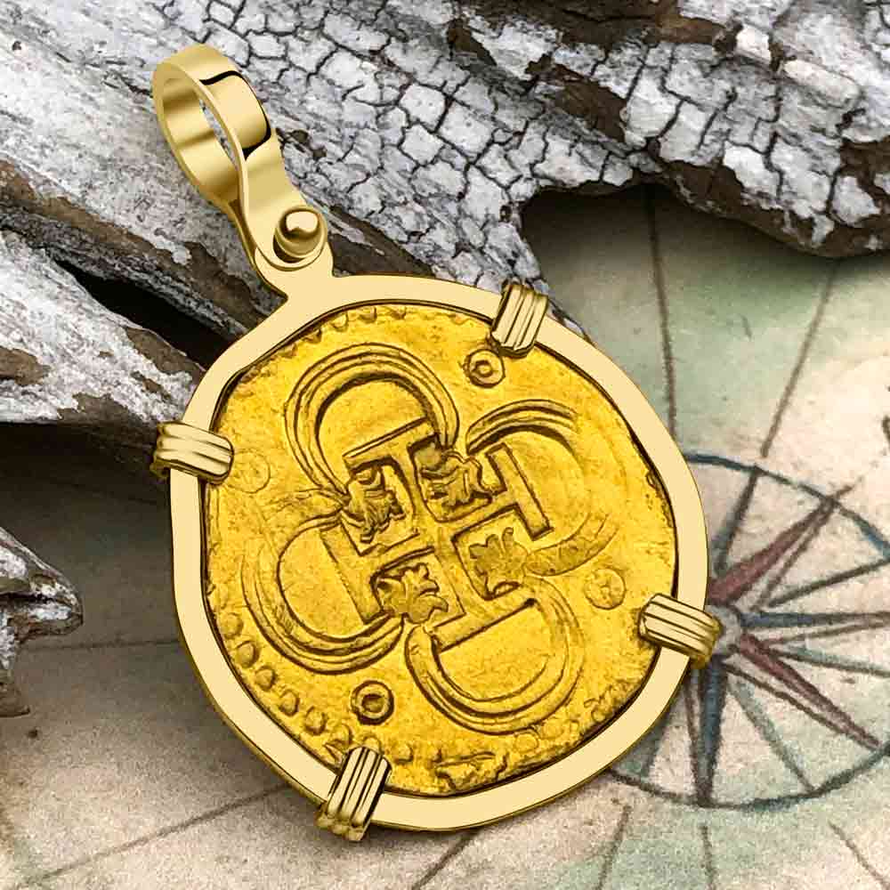 Pirate Era Circa 1580 22K Gold 2 Escudo - the Legendary Doubloon - 18K Gold Pendant | Artifact #5803