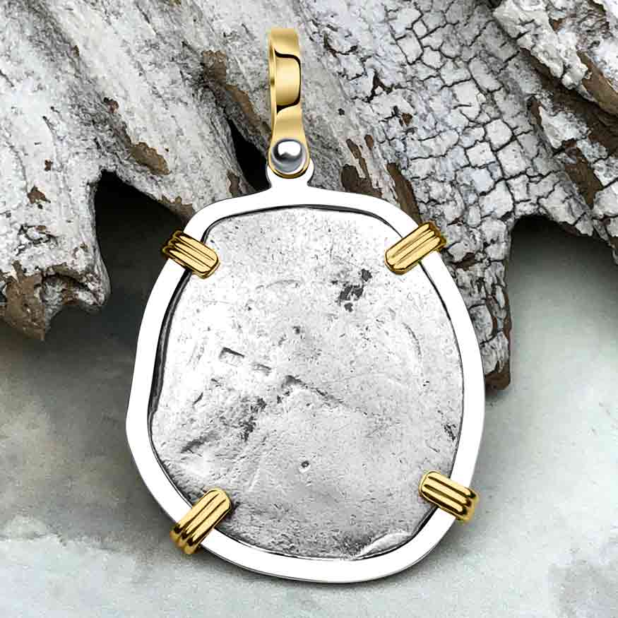 Pirate Era Circa 1670 Spanish 2 Reale Cob Piece of 8 14K Gold and Sterling Silver Pendant | Artifact #3495