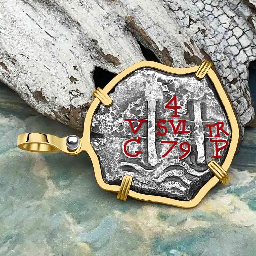 Rare 1679 Consolacion Shipwreck Pirate Era 4 Reale Cob 14K Gold Pendant | Artifact #5028 is backordered and will ship as soon as it is back in stock.