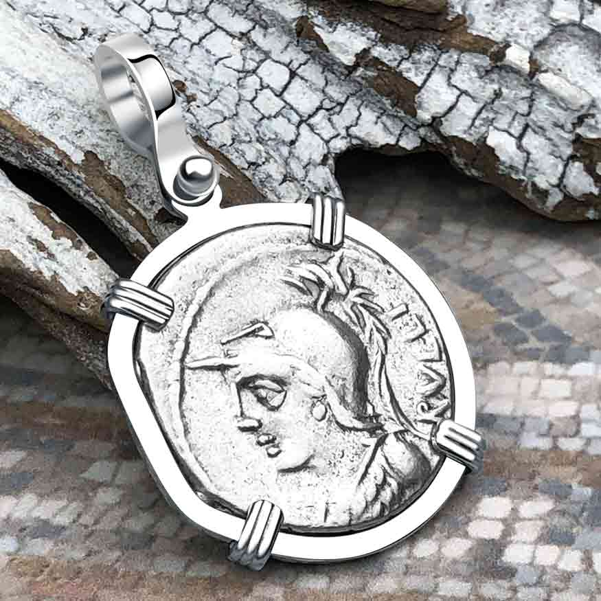Roman Republic Silver Denarius 100 BC Pendant with Mars, the God of War & Victory