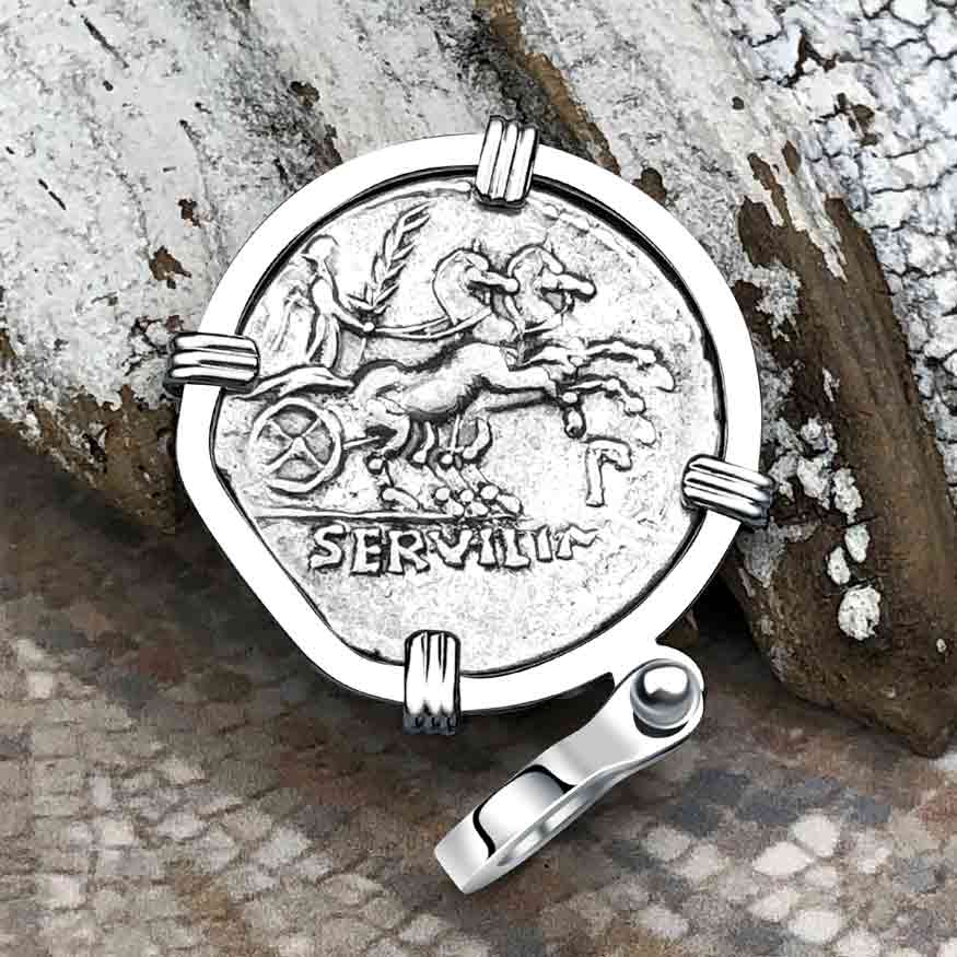 Roman Republic Silver Denarius 100 BC Mars and Victory 14K White Gold Pendant | Artifact #5411