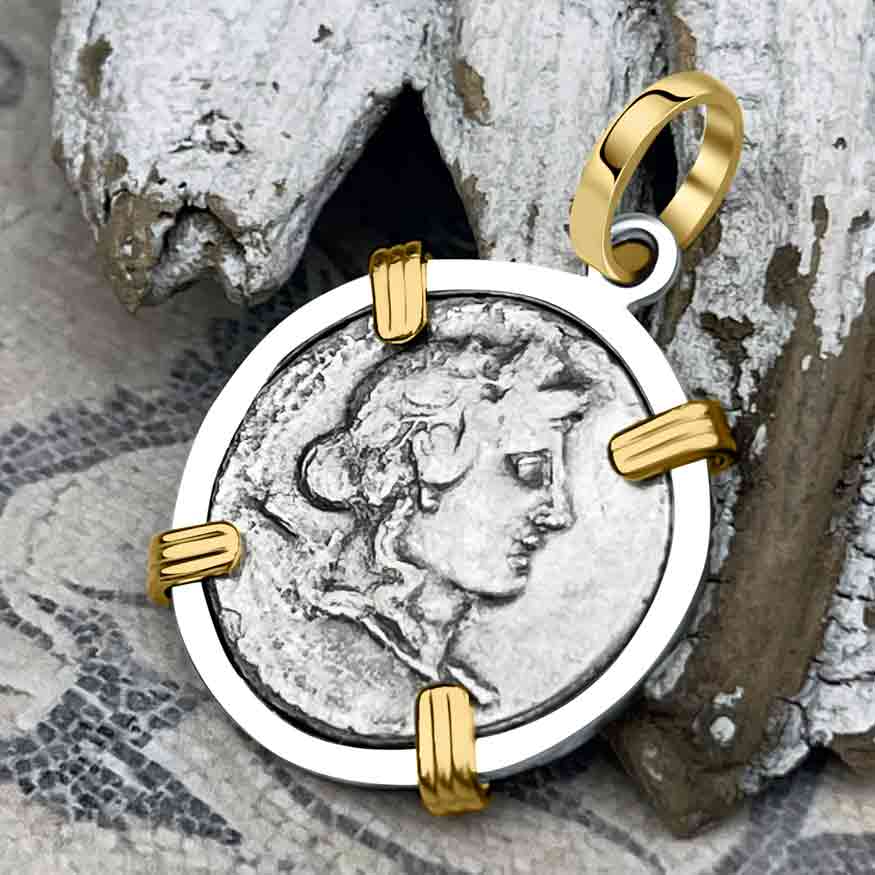 Roman Republic Silver Denarius 78 BC Liber and Libera 14K Gold and Sterling Silver Pendant | Artifact #8790