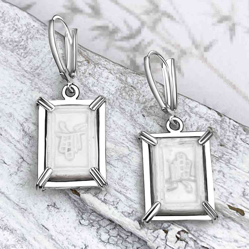 Siam Porcelain Gaming Token - from the Era of "The King & I" - Sterling Silver Earrings | Artifact #8087