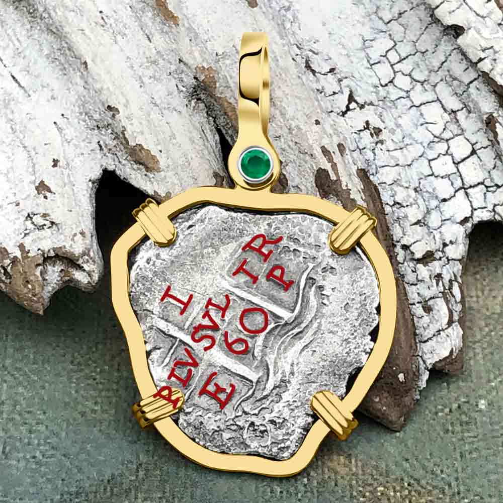 STUNNING Heart Shaped Pirate Era 1660 Spanish 1 Reale Cob Piece of 8 14K Gold with Emeralds Pendant | Artifact #3502