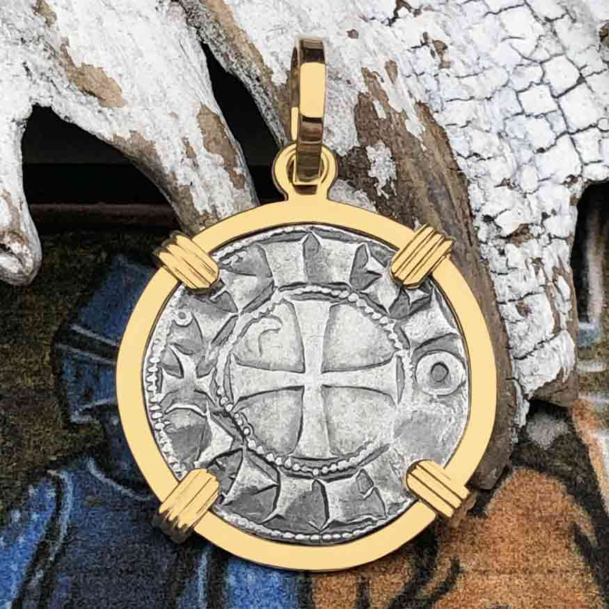Templar Knights Era Antioch Crusader Medieval Silver Denier - Helmet Head - Coin of the Crusades 14K Gold Pendant | Artifact #5833 is backordered and will ship as soon as it is back in stock.