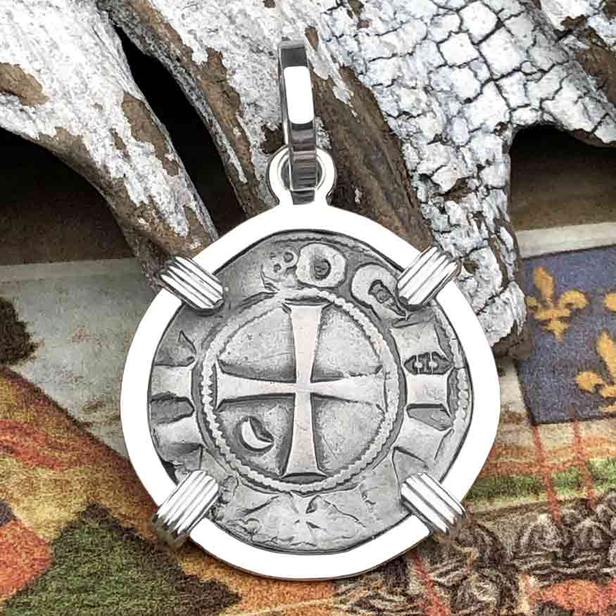 Templar Knights Era Antioch Crusader Medieval Silver Denier Helmet Head Coin of the Crusades Sterling Silver Pendant | Artifact #5835