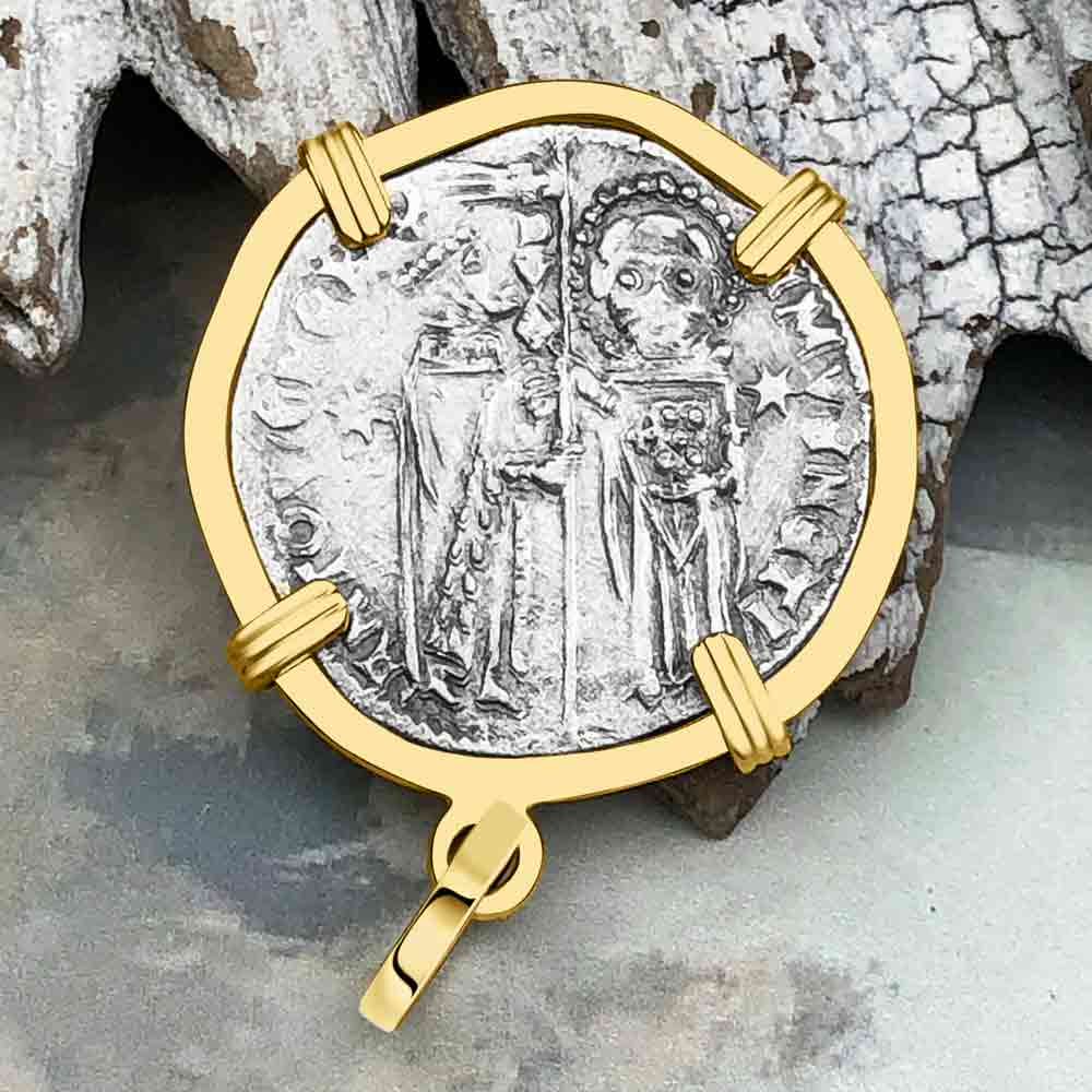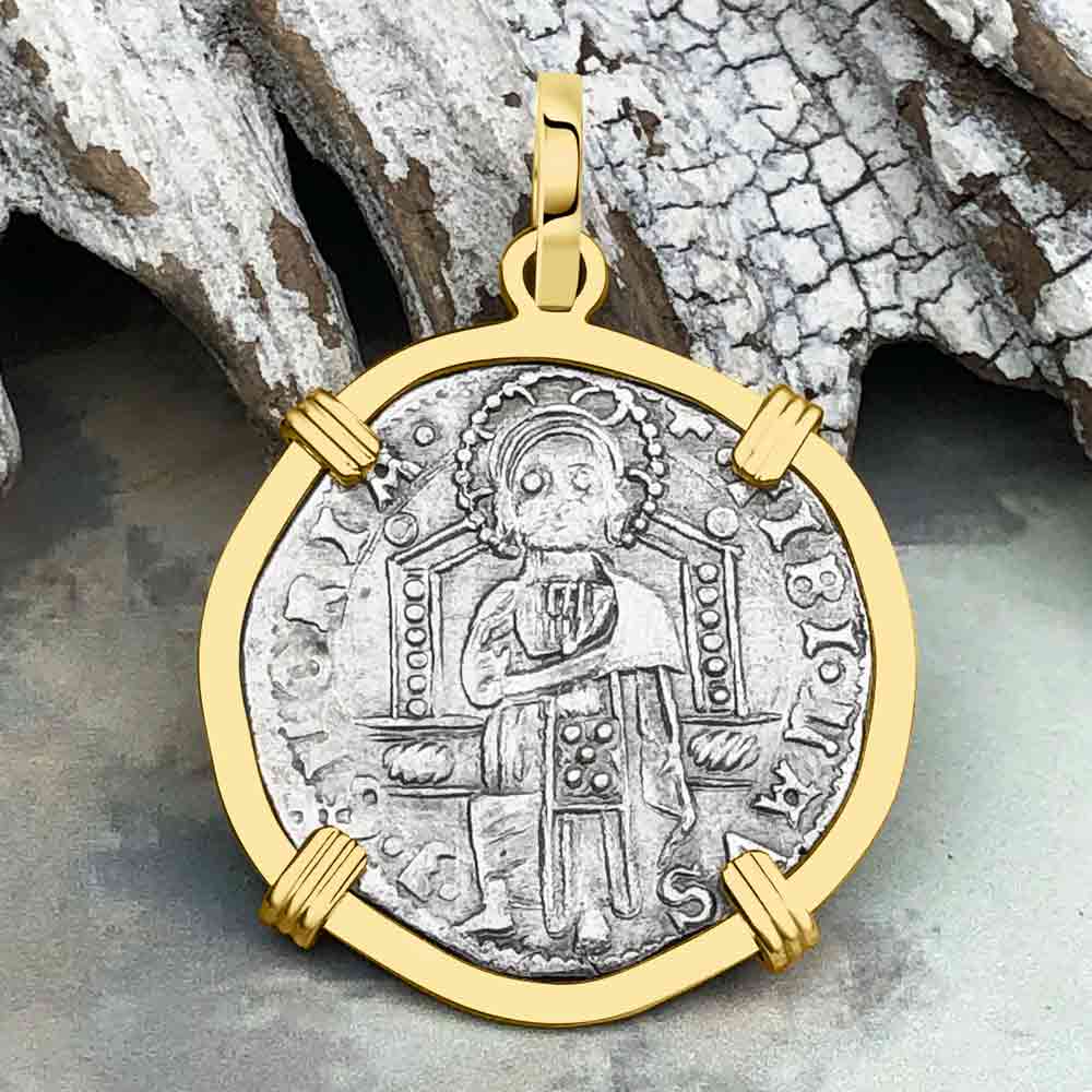 Venetian Jesus Christ Glory, Devotion & Courage Silver 1390 Grosso Coin 14K Gold Pendant | Artifact #5817